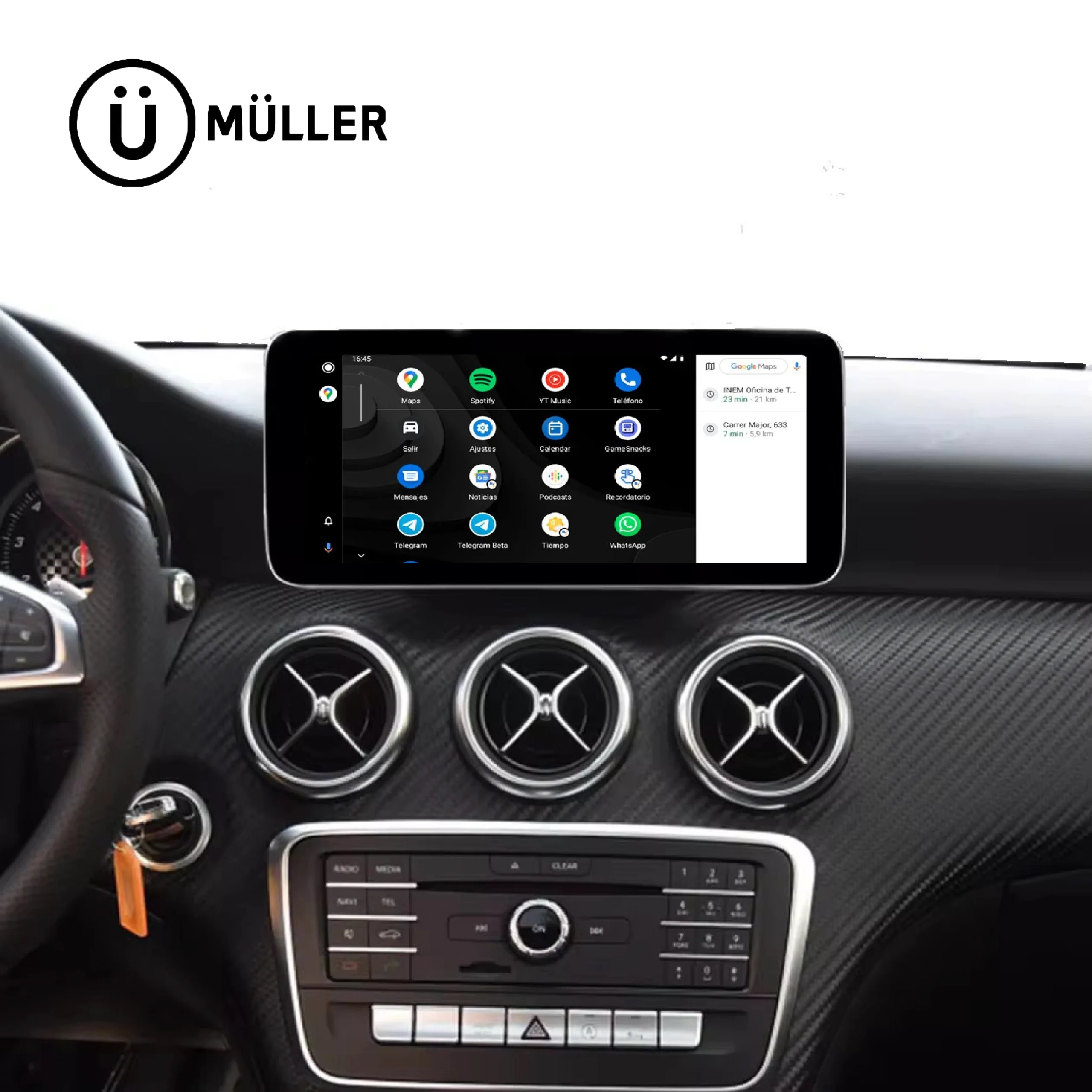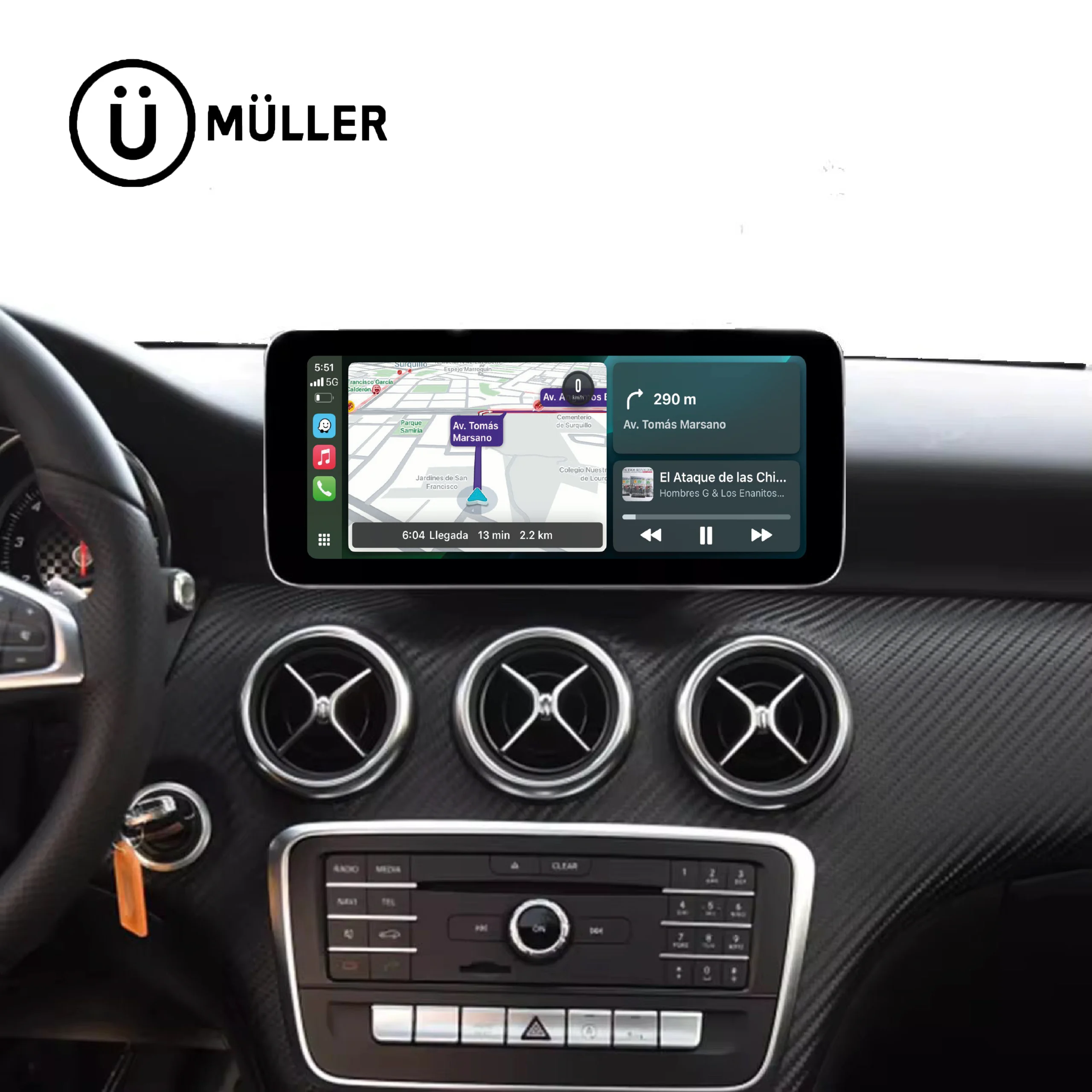 Pantalla Müller Mercedes-Benz Clase A W176 con Apple CarPlay y Android Auto oficial