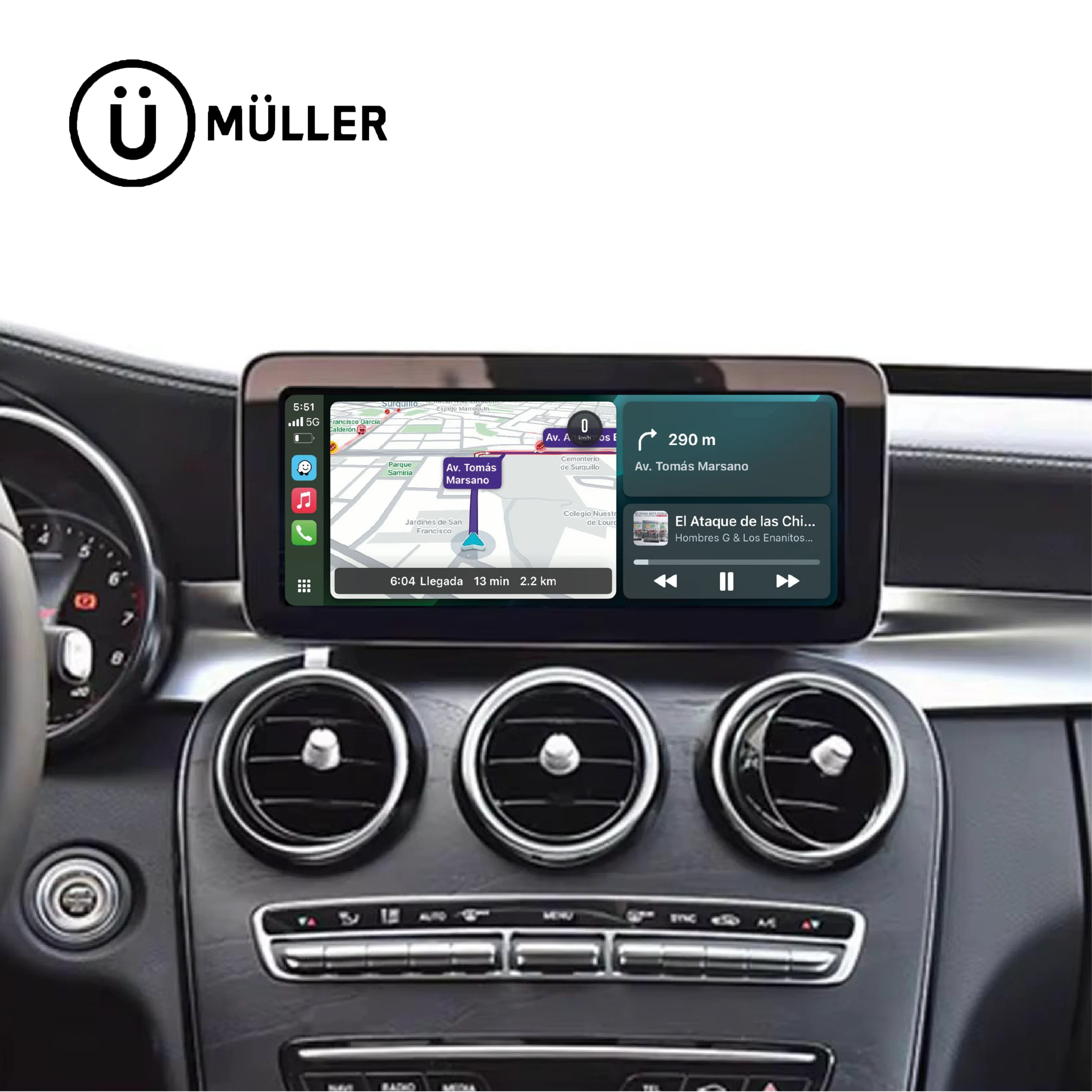 La pantalla táctil Müller de 10.25” ofrece una excelente combinación entre tecnología moderna, conectividad inteligente y compatibilidad con el sistema original del vehículo. Su diseño OEM, su sistema basado en Linux, su licencia oficial para CarPlay y Android Auto, y su compatibilidad con sensores y cámara de reversa la convierten en una gran alternativa para renovar el sistema multimedia de tu Mercedes-Benz sin perder funcionalidad de fábrica.